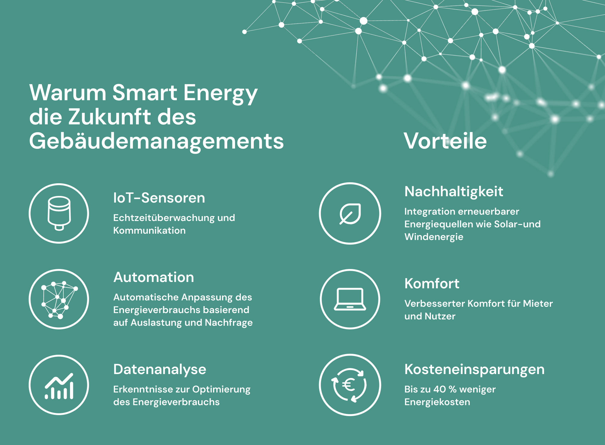 Smart Energy ist weit mehr als nur ein Upgrade; es ist die Zukunft des Gebäudemanagements. Durch die Kombination von Echtzeitdaten, Automatisierung und vorausschauender Analyse können Gebäudemanager von einer reaktiven zu einer proaktiven Strategie übergehen. Dieser Wandel optimiert nicht nur den Energieverbrauch und senkt die Betriebskosten, sondern unterstützt auch globale Nachhaltigkeitsziele.