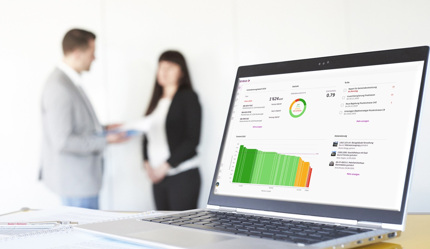 Zu Smart ConnectStratus ist die führende Software für strategisches Immobilienportfolio-Management und wurde entwickelt von den Fachleuten von Basler & Hofmann. Stratus unterstützt seit 25 Jahren professionelle Immobilieneigentümer wirksam von der Zustandserfassung über die Investitionsplanung bis hin zum CO₂-Absenkpfad und befähigt seine Kunden, sichere, nachhaltige und wirtschaftlich sinnvolle Investitionsentscheide zu treffen.